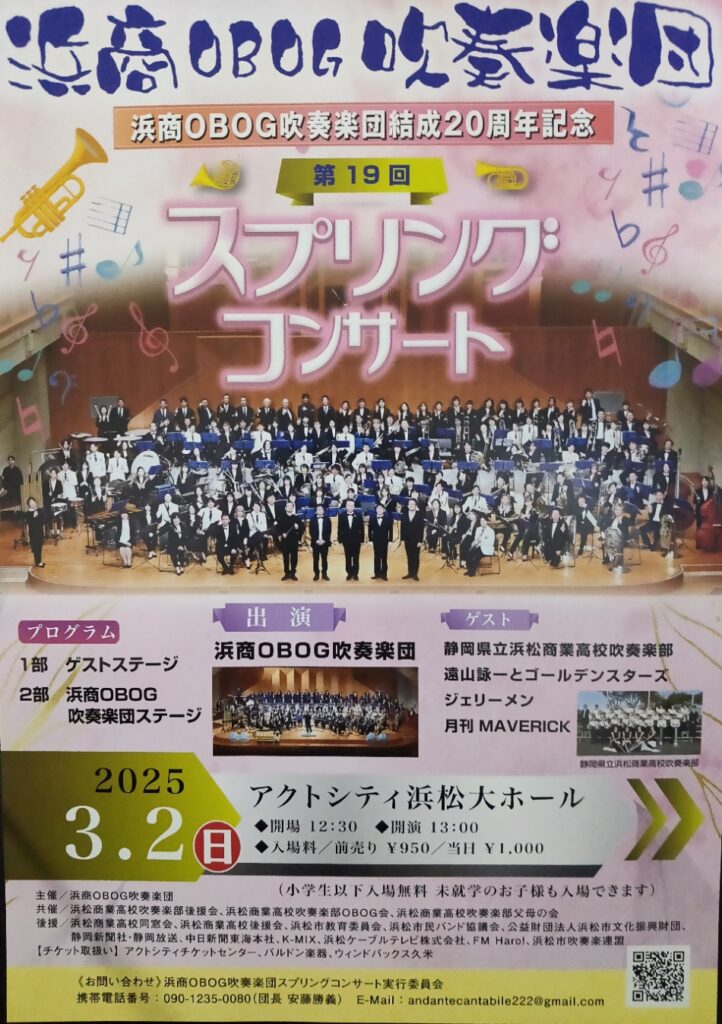 新OBOG吹奏楽団とのスプリングコンサートに現役吹奏楽部も出演させていただきます。